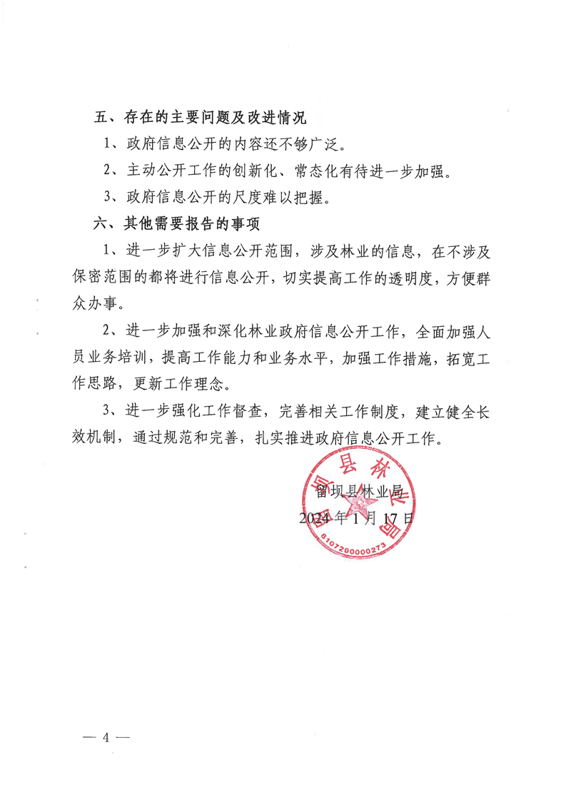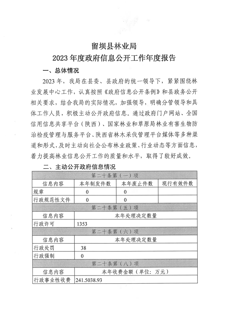 留坝县林业局2023年度政府信息公开工作情况的报告