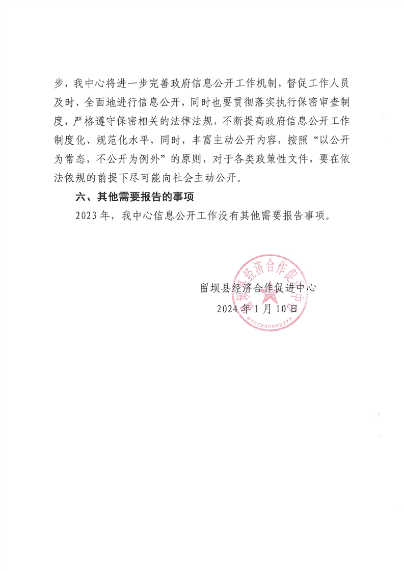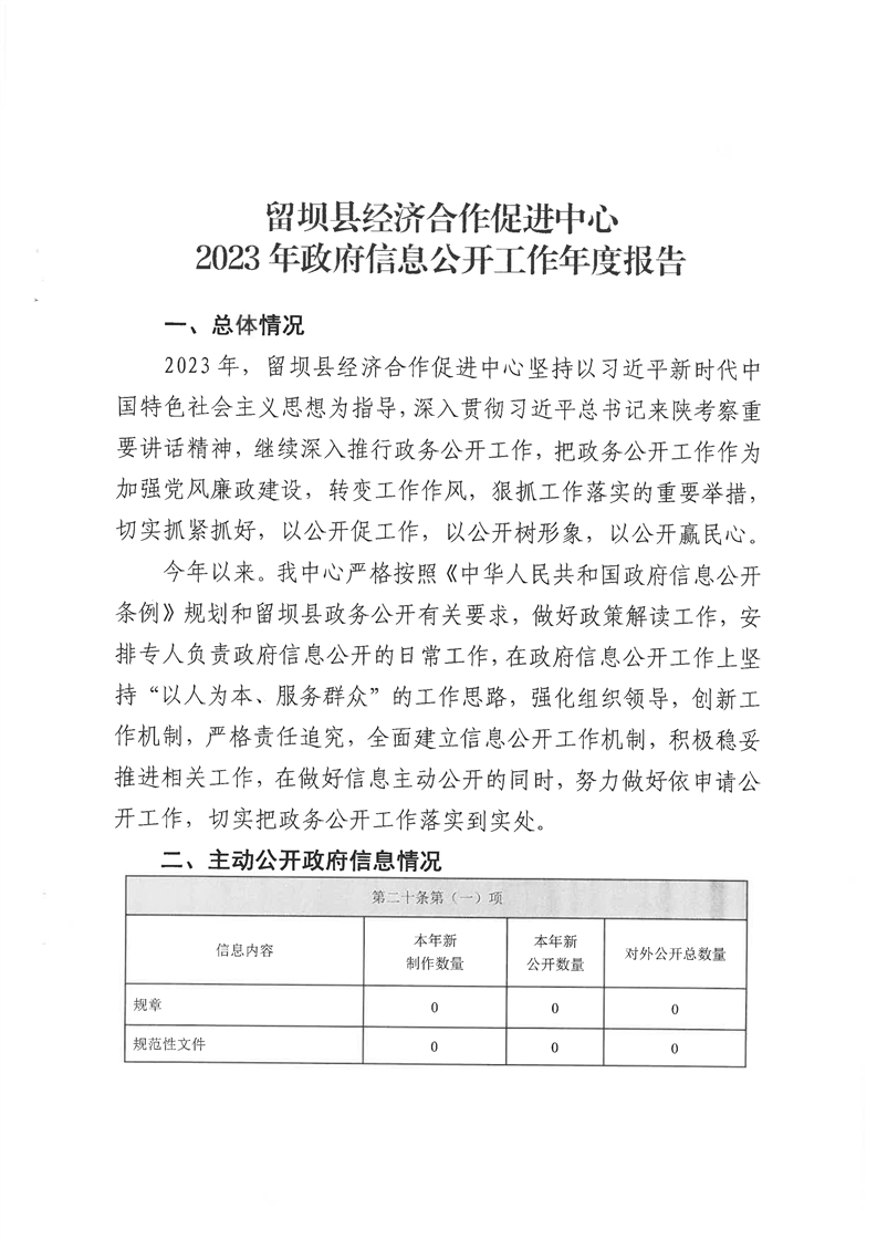 留坝县经济合作促进中心2023年政府信息公开工作年度报告