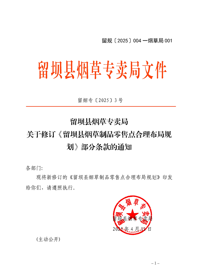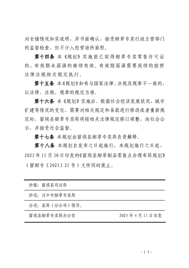 关于修订《留坝县烟草制品零售点合理布局规划》部分条款的通知
