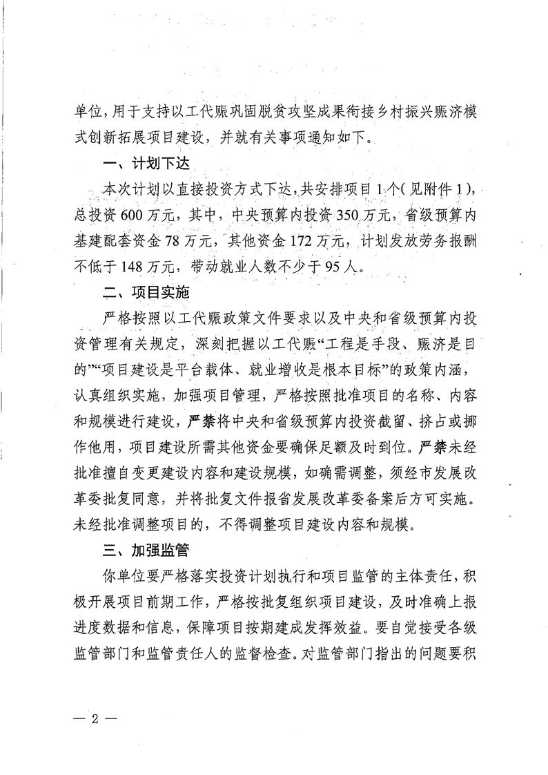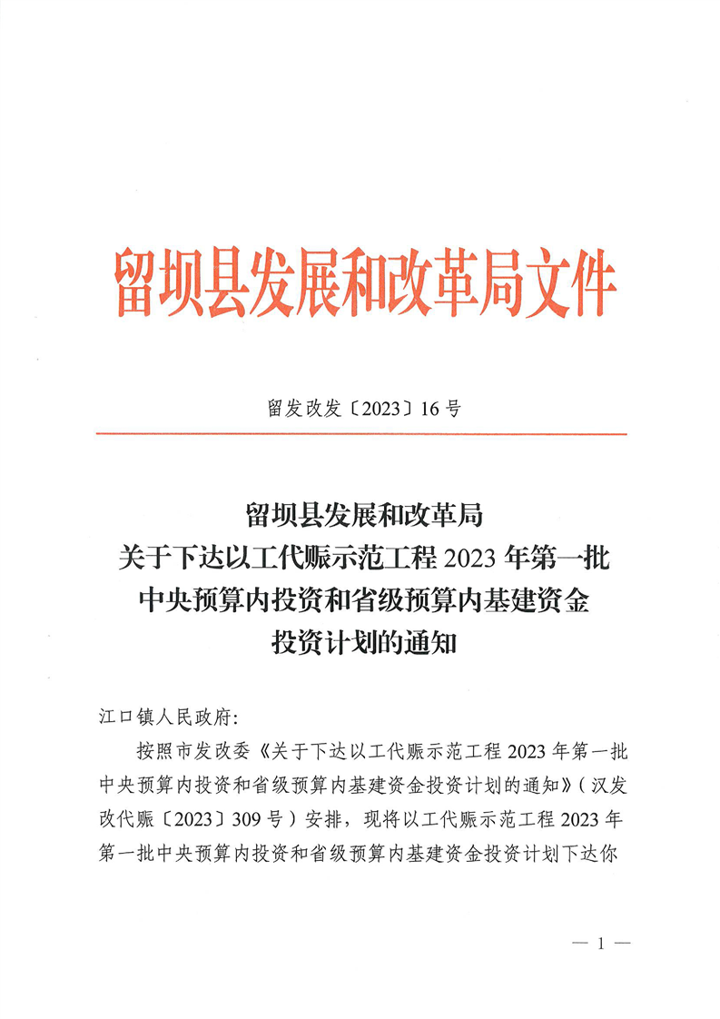 关于下达以工代赈示范工程2023年第一批中央预算内投资和省级预算内基建资金投资计划的通知