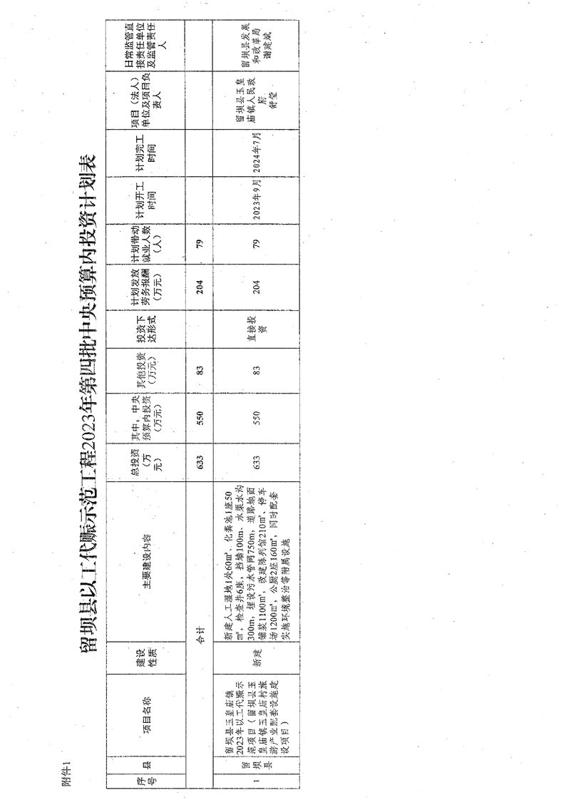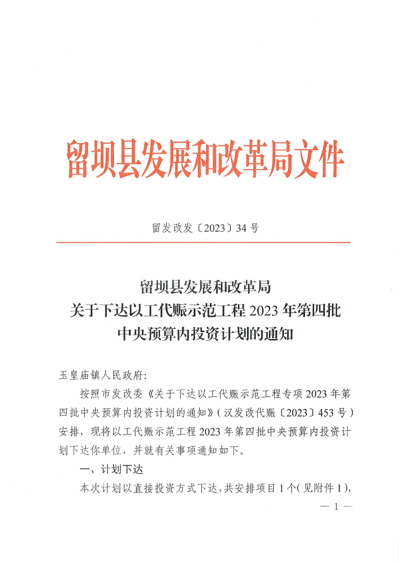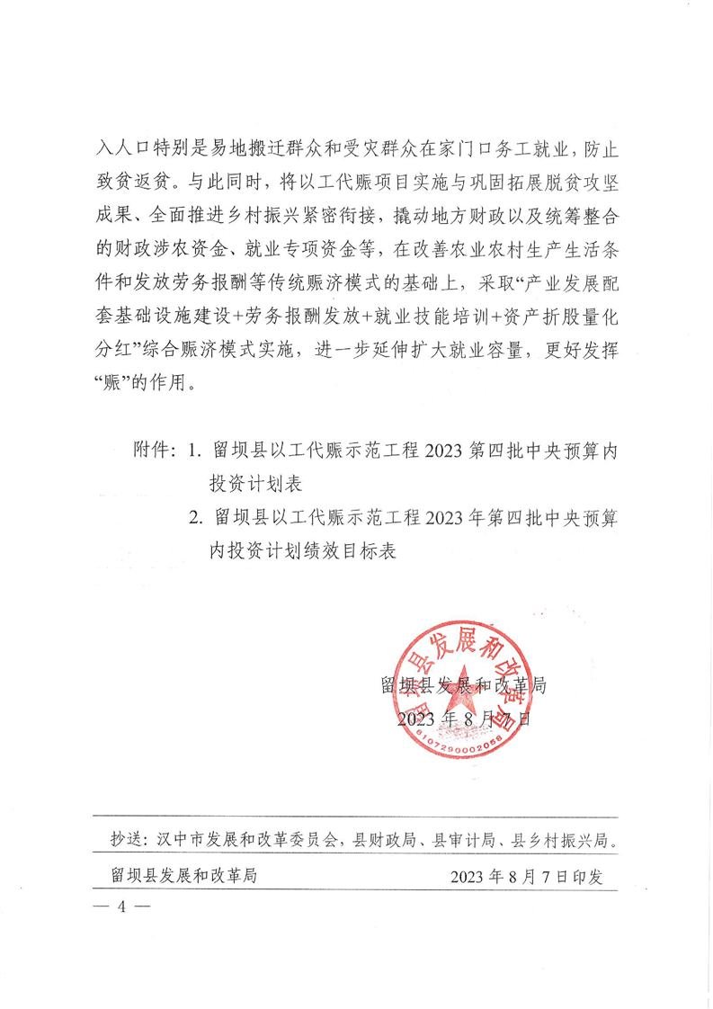 关于下达以工代赈示范工程2023年第四批中央预算内投资计划的通知