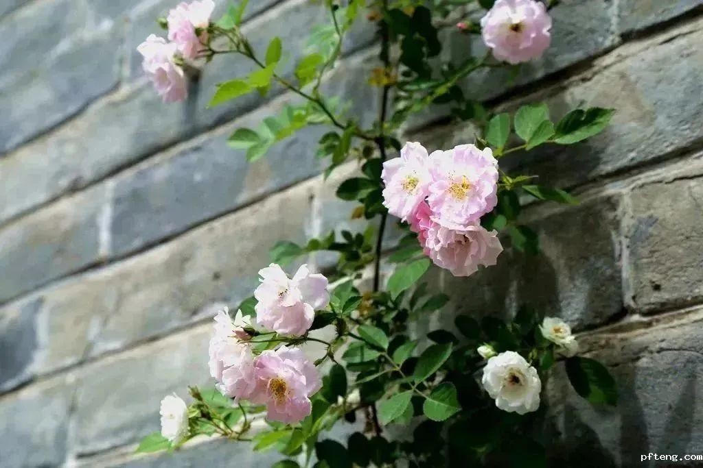 春风吹拂,蔷薇花轻轻摇曳,绽放着无限生机与活力。仿佛是古老城墙的守护者,又似那古老的诗篇在风中低吟。她的花瓣,如同少女的脸庞,粉嫩而娇艳,在古老城墙的映衬下,显得更加妩媚动人。