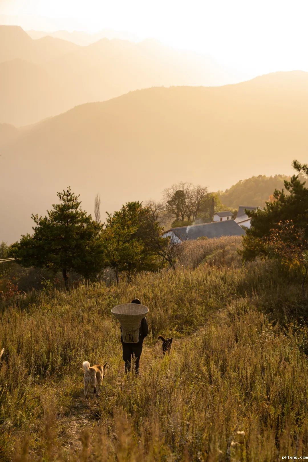 最后在路尽头的山巅上,更可见到一片天然的高山草甸,对面江口镇和狮子坝赫然出现在眼前,正是层林尽染时,万山红遍。山顶至今还生活着三两户人家,黄墙黛瓦、炊烟袅袅,更是秦岭秘境中的别样风景。