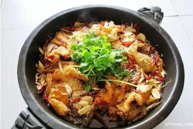 石锅鱼首先得有石锅得有鱼,石锅就是留坝当地人用的碓窝,碓窝有大有小,大的可以蹋搅团(舂糍粑),小的可以蹋蒜蹋辣子,当然了随着时代的进步石锅也得进步,蹋搅团的碓窝一个都有几百斤重,太不方便,就是蹋蒜用的小碓窝也有十几斤至几十斤重,所以现在用的石锅都是改良后的产品,既有石头的品质又轻便美观。鱼当然就是褒河里产的鱼了,现在大多数都改用刺少肉多的黑鱼,或江团,当然吃草鱼的也不少。褒河水养殖的鱼土腥味少,肉质紧实,经煮不烂,汤鲜味美。
