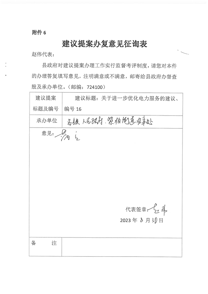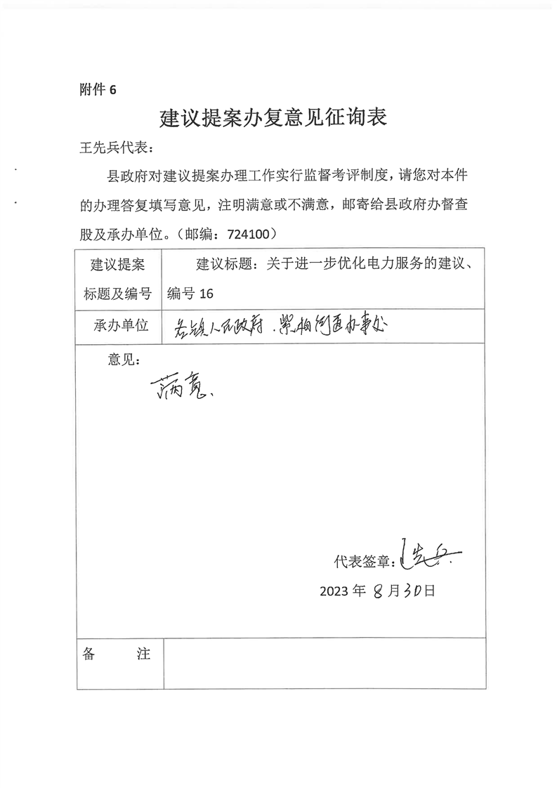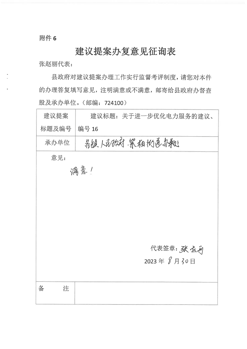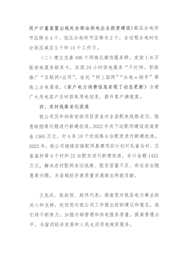 国网陕西省电力有限公司留坝县供电分公司关于留坝县十九届人大二次会议第16号建议进一步优化电力服务的复函