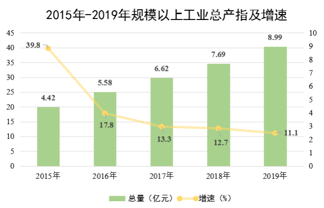 规模以上工业完成总产值8.99亿元,同比增长11.1%。其中,轻工业完成产值5.16亿元,同比增长11.7%;重工业完成产值3.83亿元,同比增长10.3%。全部工业增加值2.44亿元,同比增长10.6%,其中规模以上工业增加值增长12.2%。