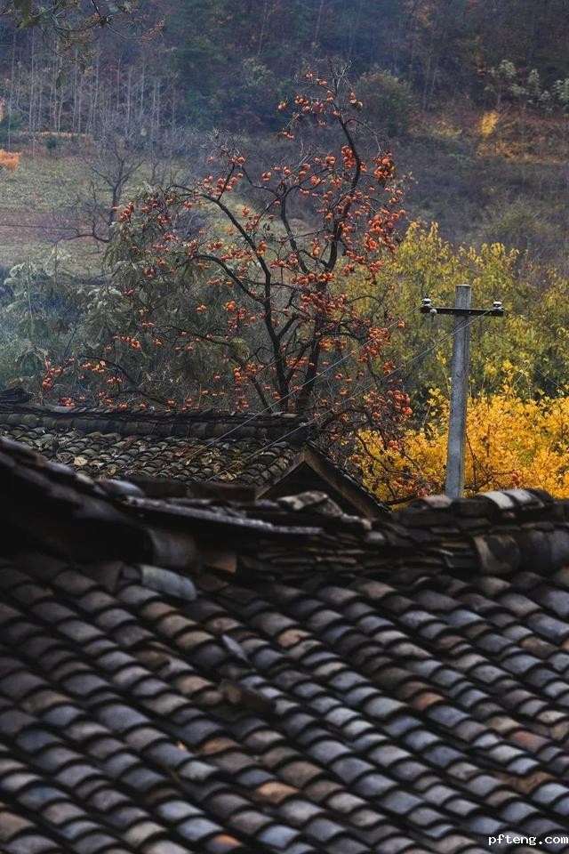 除了气势磅礴的秋色,这里还有着温柔的小景,房前屋后、公路旁、小道边,你偶遇的一颗柿子树,正满是金黄,挂着丰硕的果实。