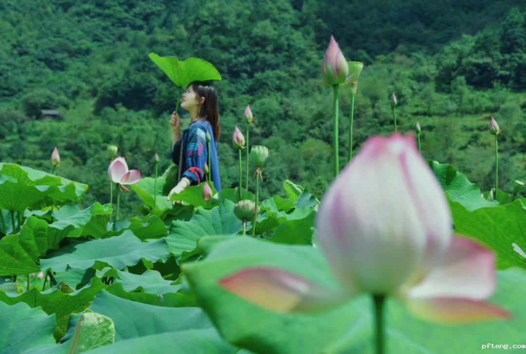 八月,正是荷花盛开、荷叶飘香的季节。有一处宛如“瑶池仙子”的地方,放眼满塘碧翠,荷叶田田,花苞、花朵与荷叶,共同组成了一幅如痴如醉的醉美荷韵图。该片荷花观赏园位于青桥驿镇社火坪村,连片的绿景让人有种误入莲花深处的错觉,深深陶醉其中……