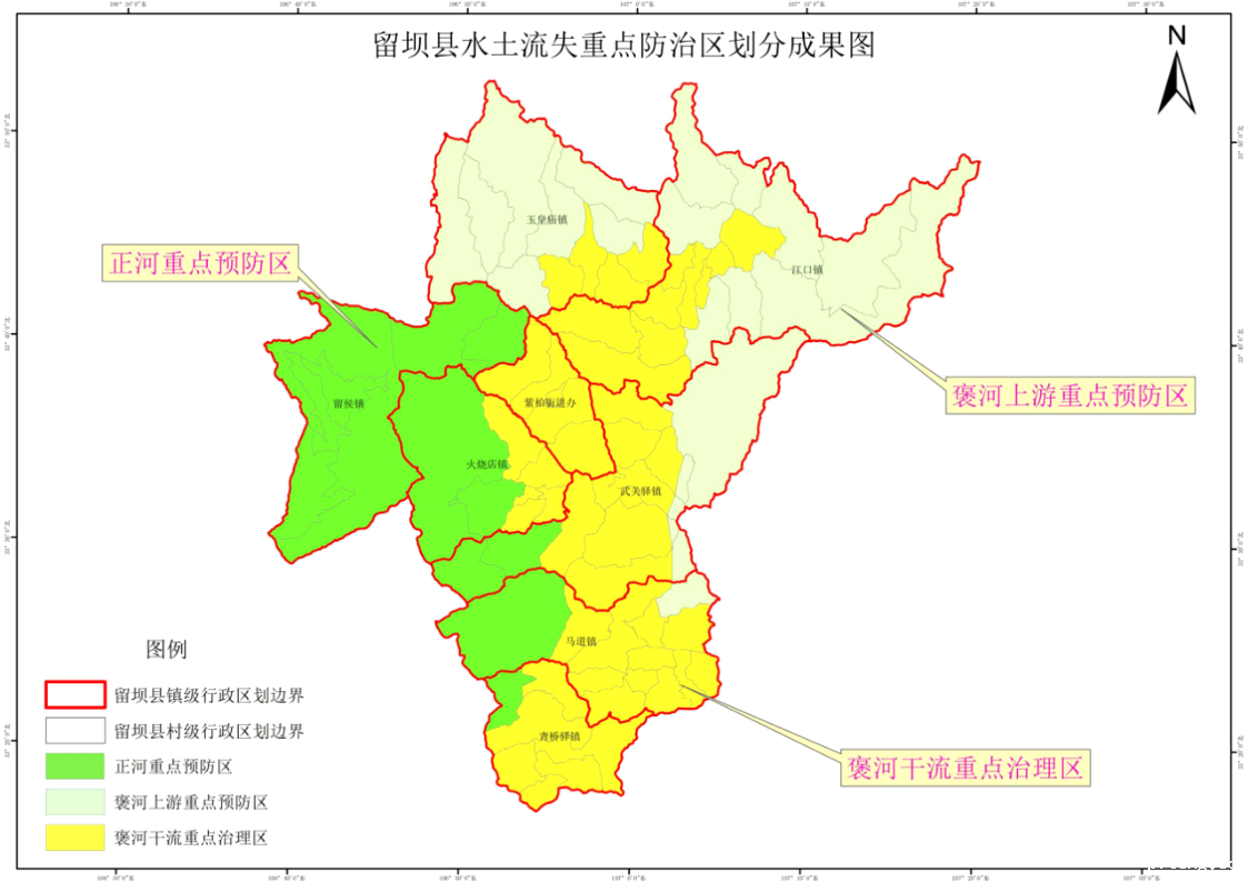 一、留坝县水土流失重点预防区:由褒河上游水土流失重点预防区、正河水土流失重点预防区两大区域组成,涉及江口镇、玉皇庙镇、留侯镇、火烧店镇、武关驿镇、马道镇、青桥驿镇7个镇。重点预防区面积1193.97平方公里,占全县国土面积的61%。