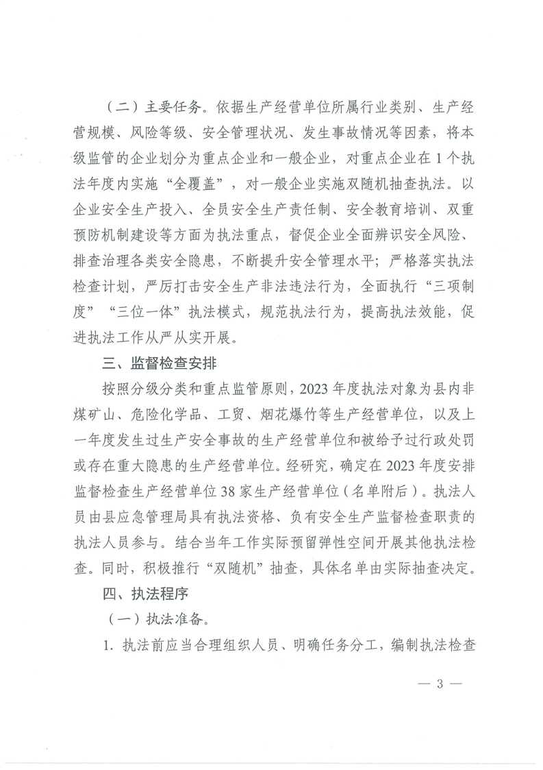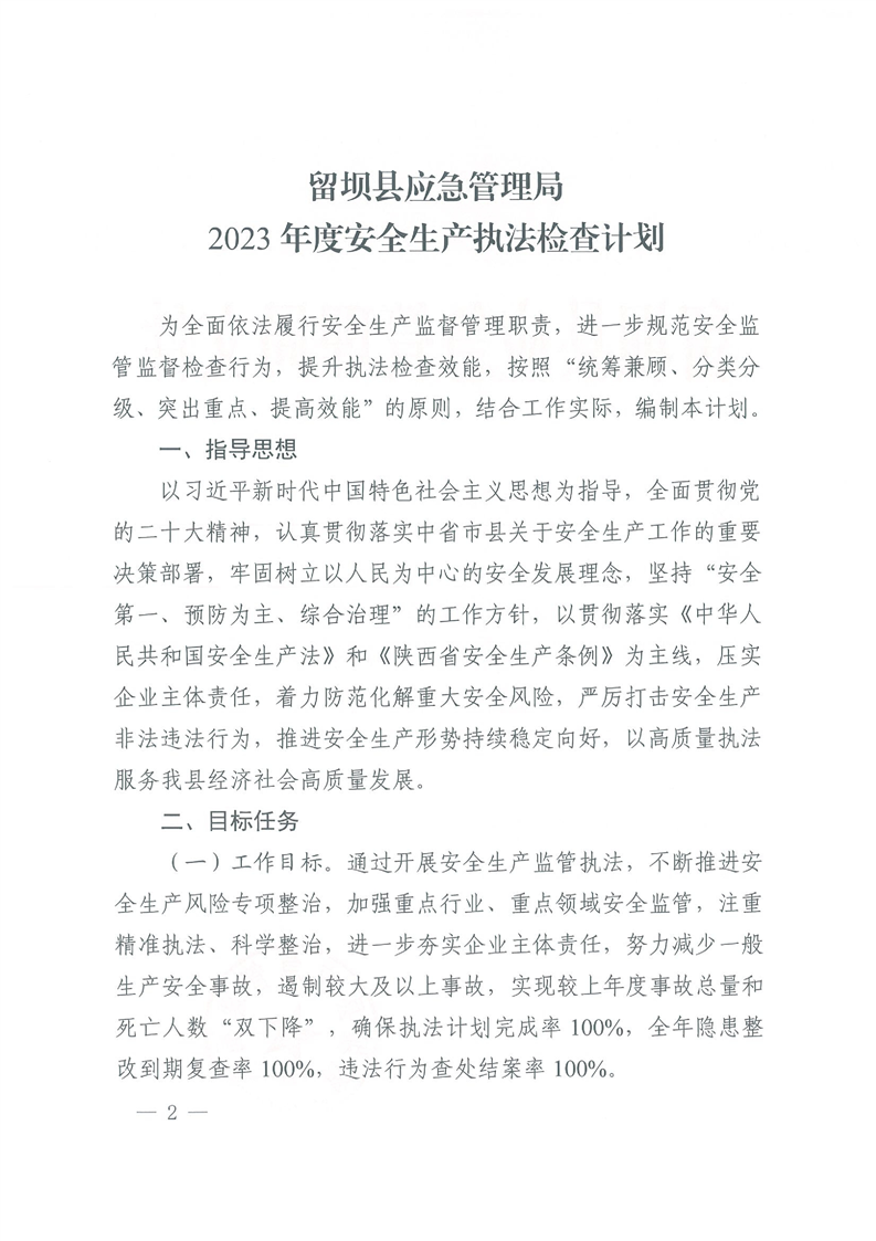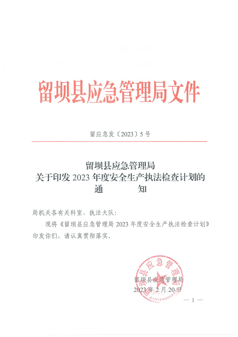 留坝县应急管理局关于印发2023年度安全生产执法检查计划的通知