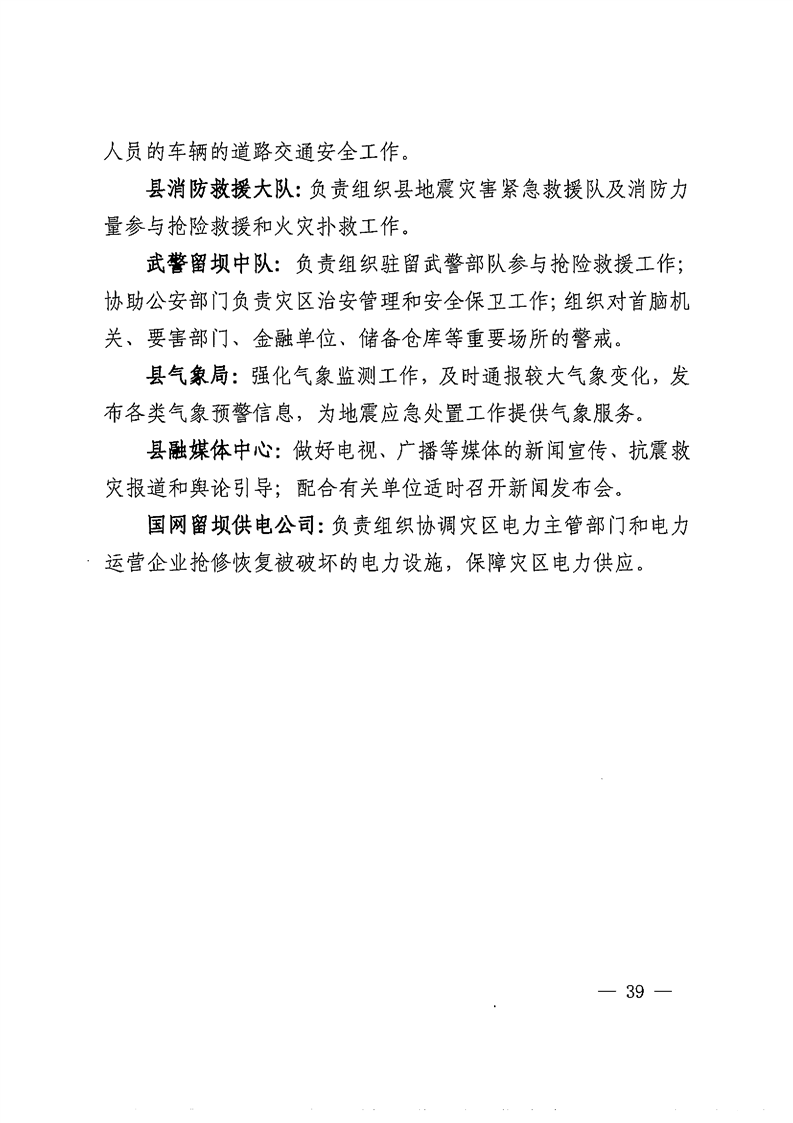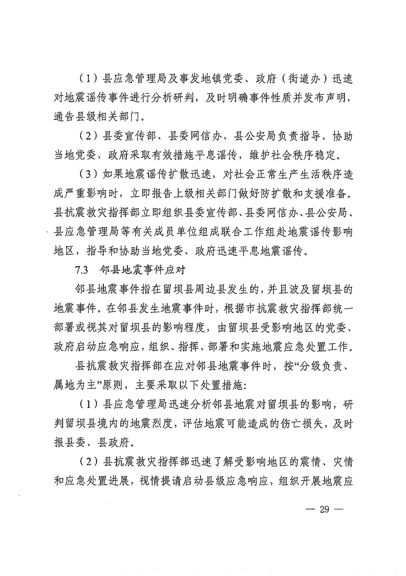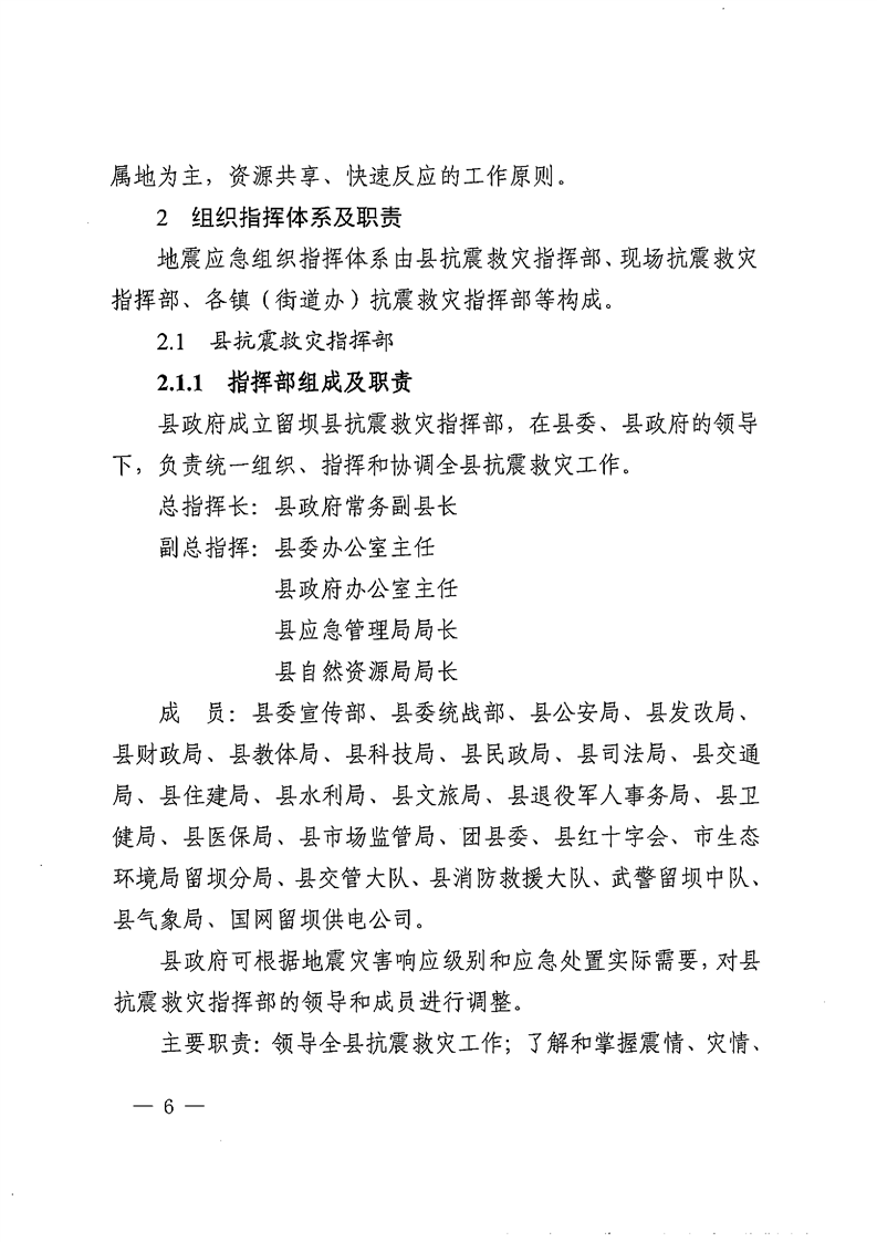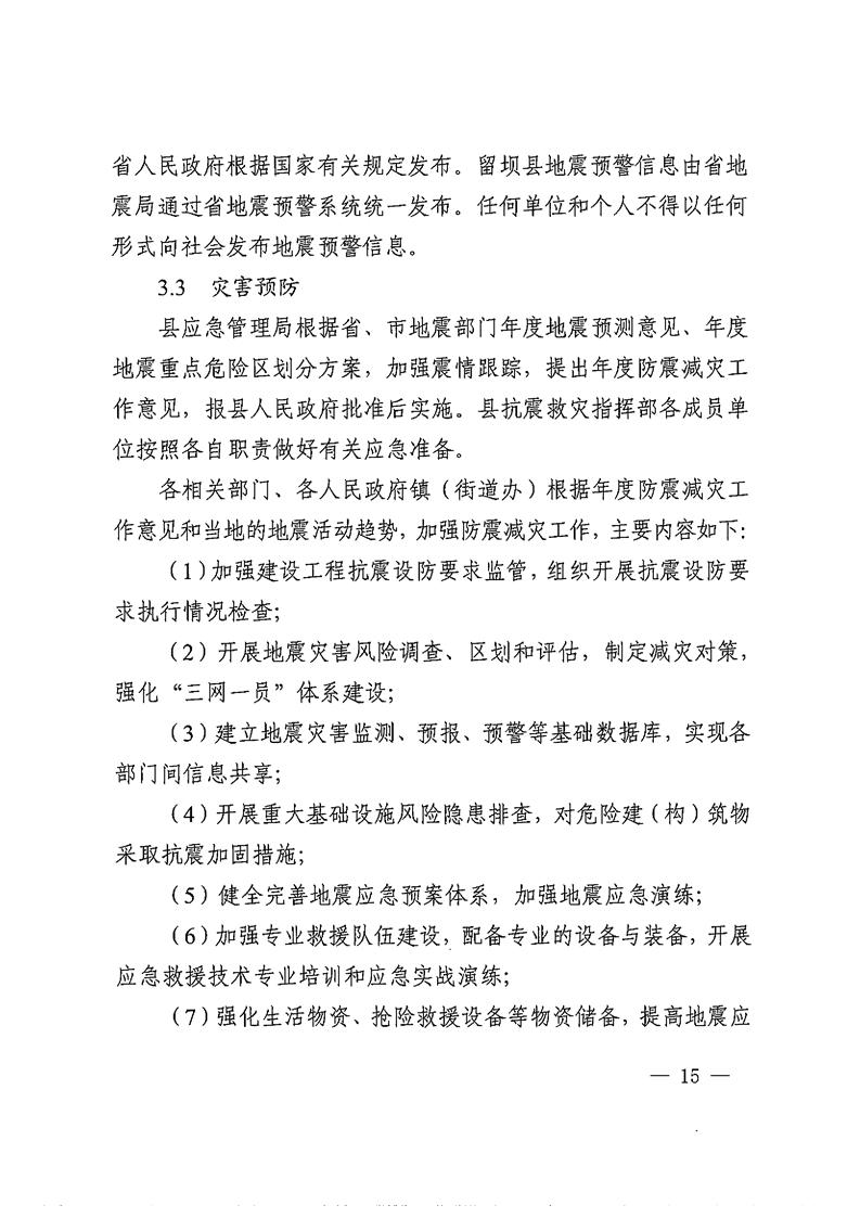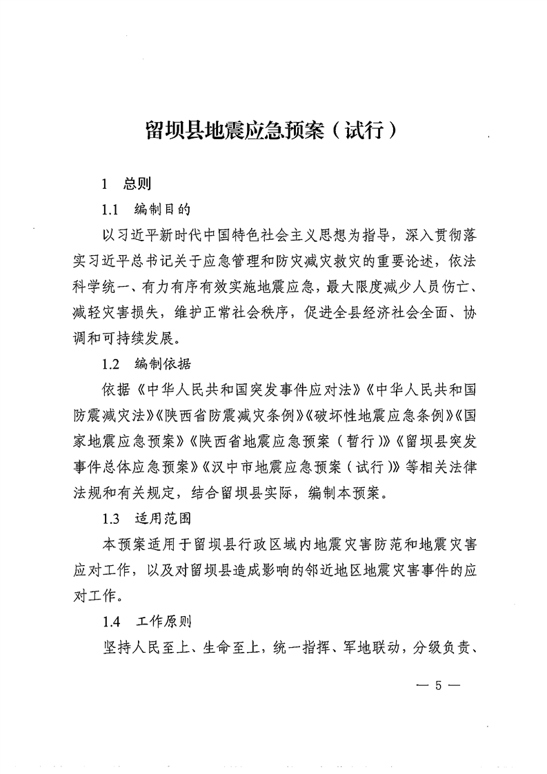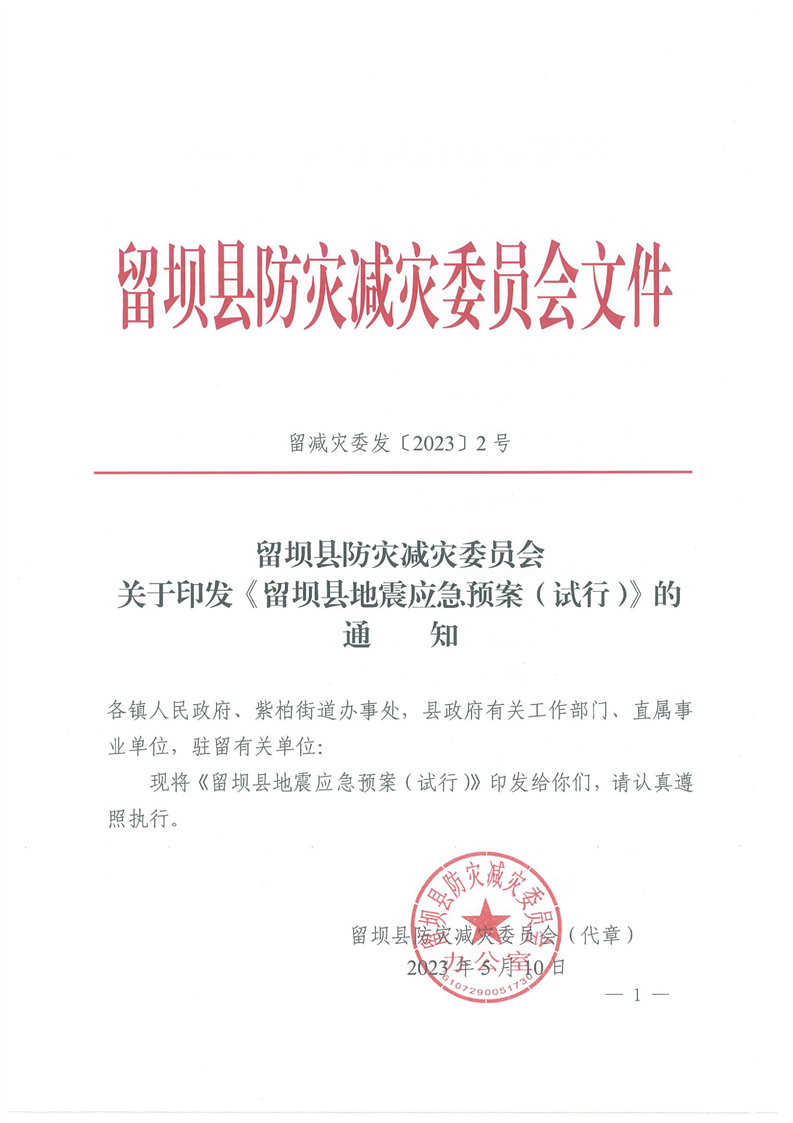 留坝县防灾减灾委员会关于印发《留坝县地震应急预案(试行 )》的通知