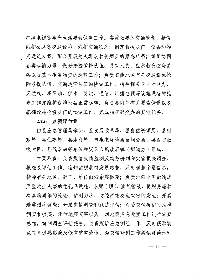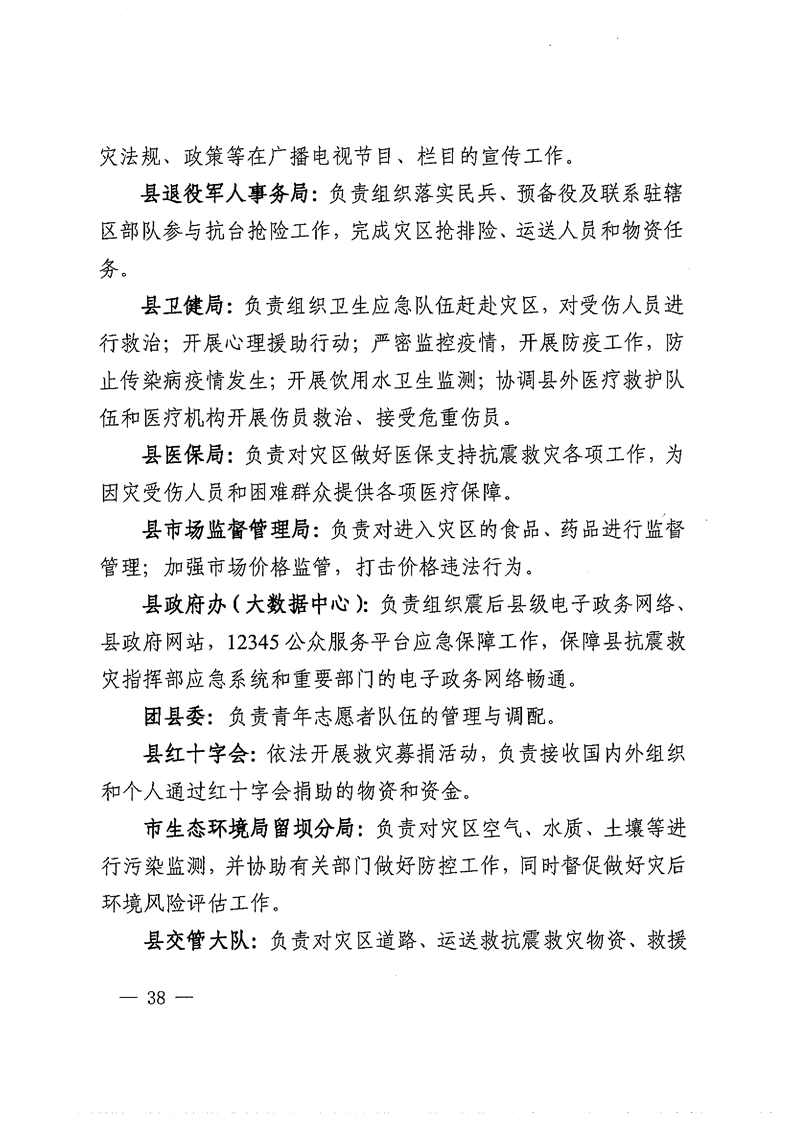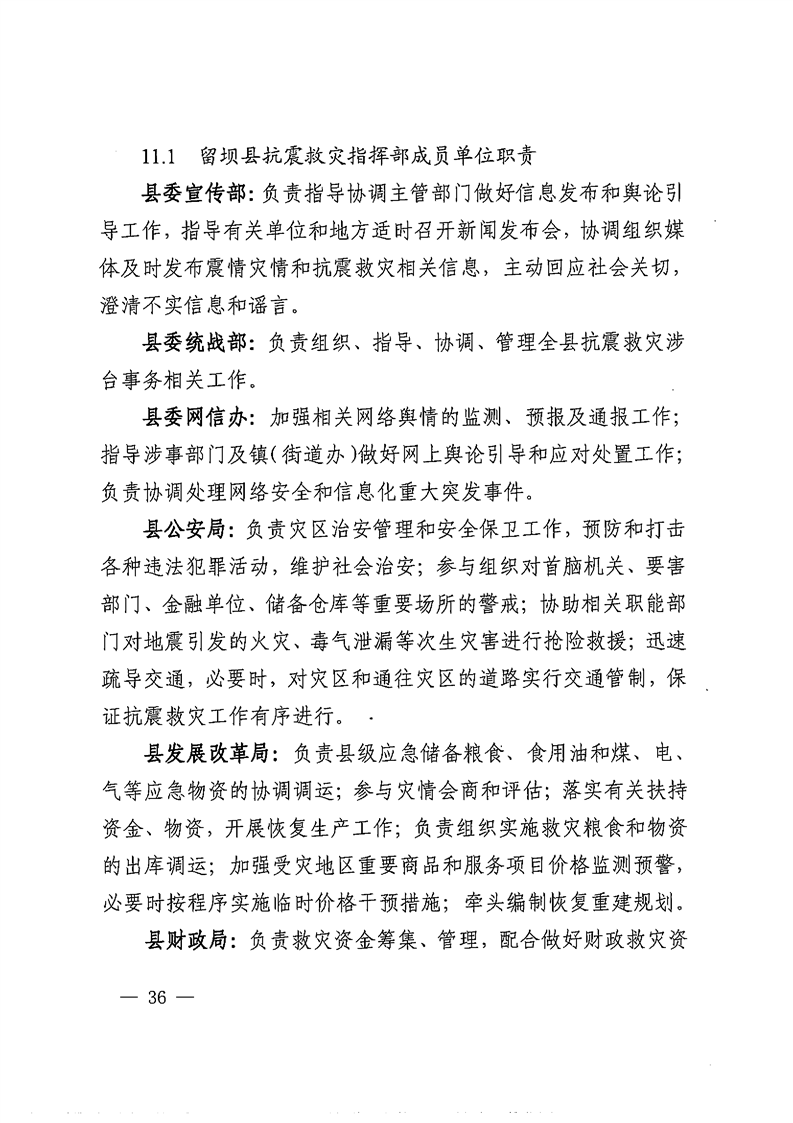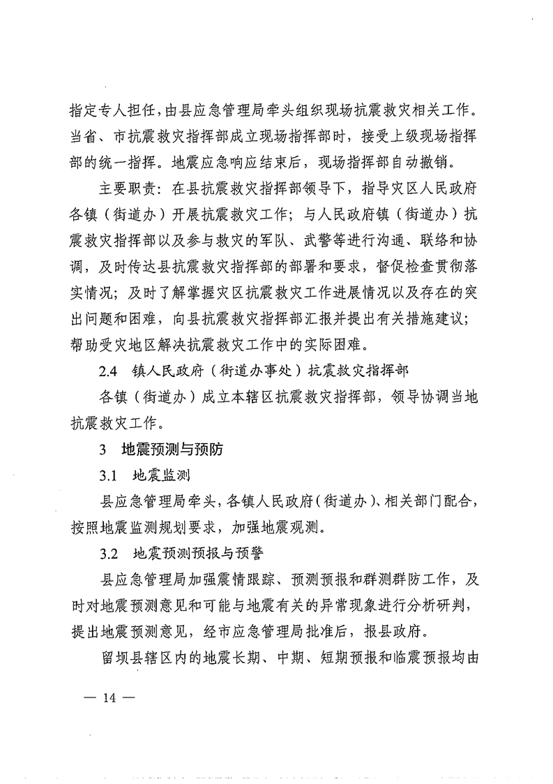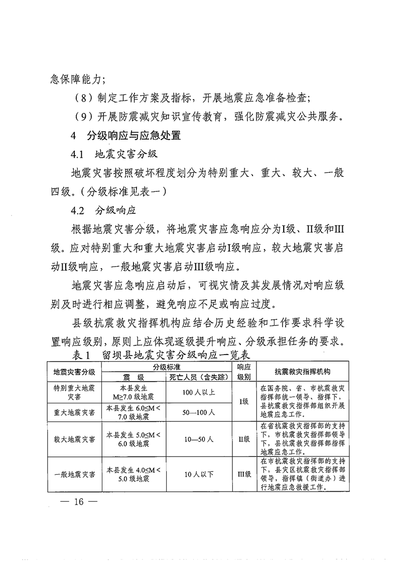 留坝县防灾减灾委员会关于印发《留坝县地震应急预案(试行 )》的通知