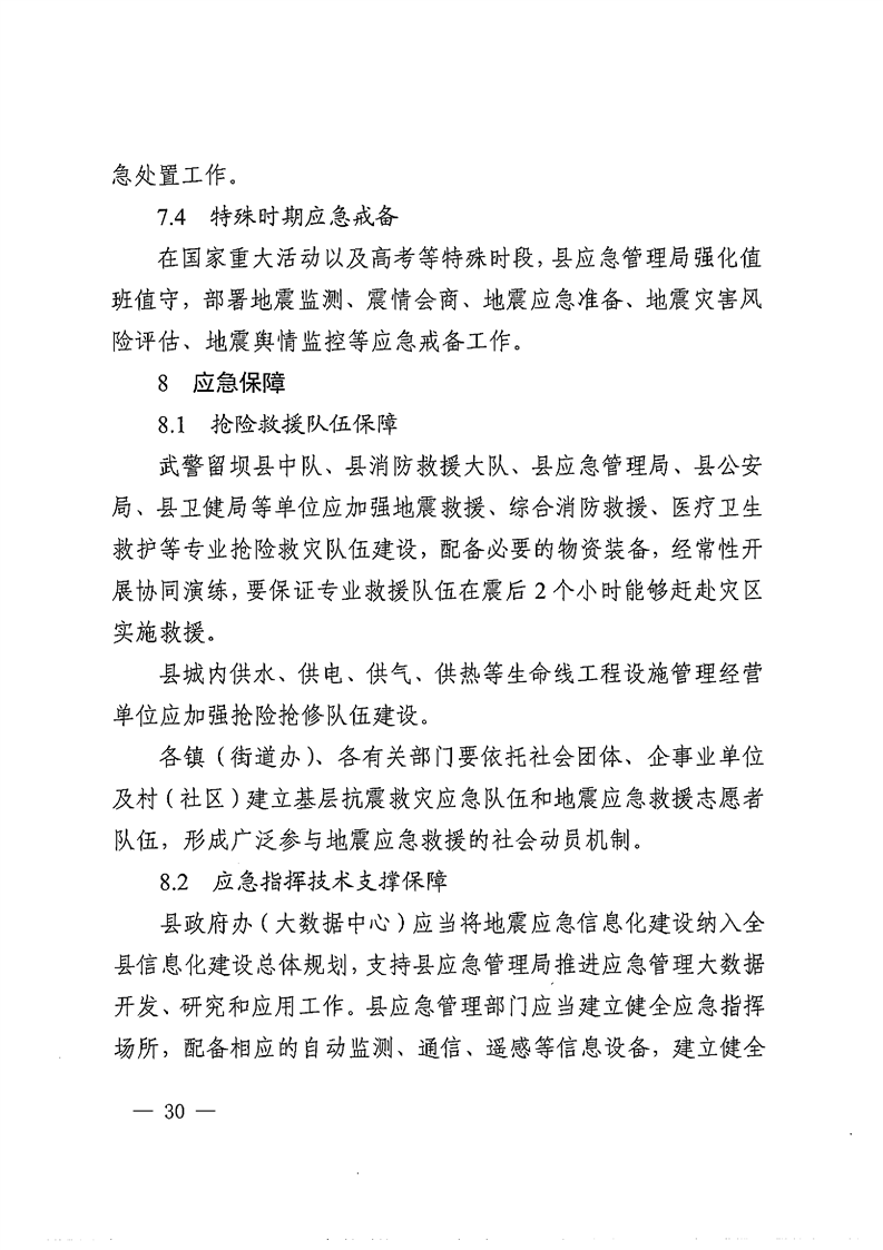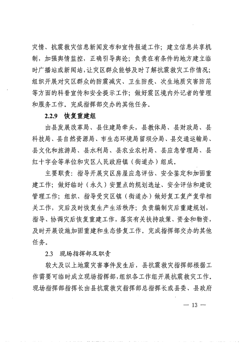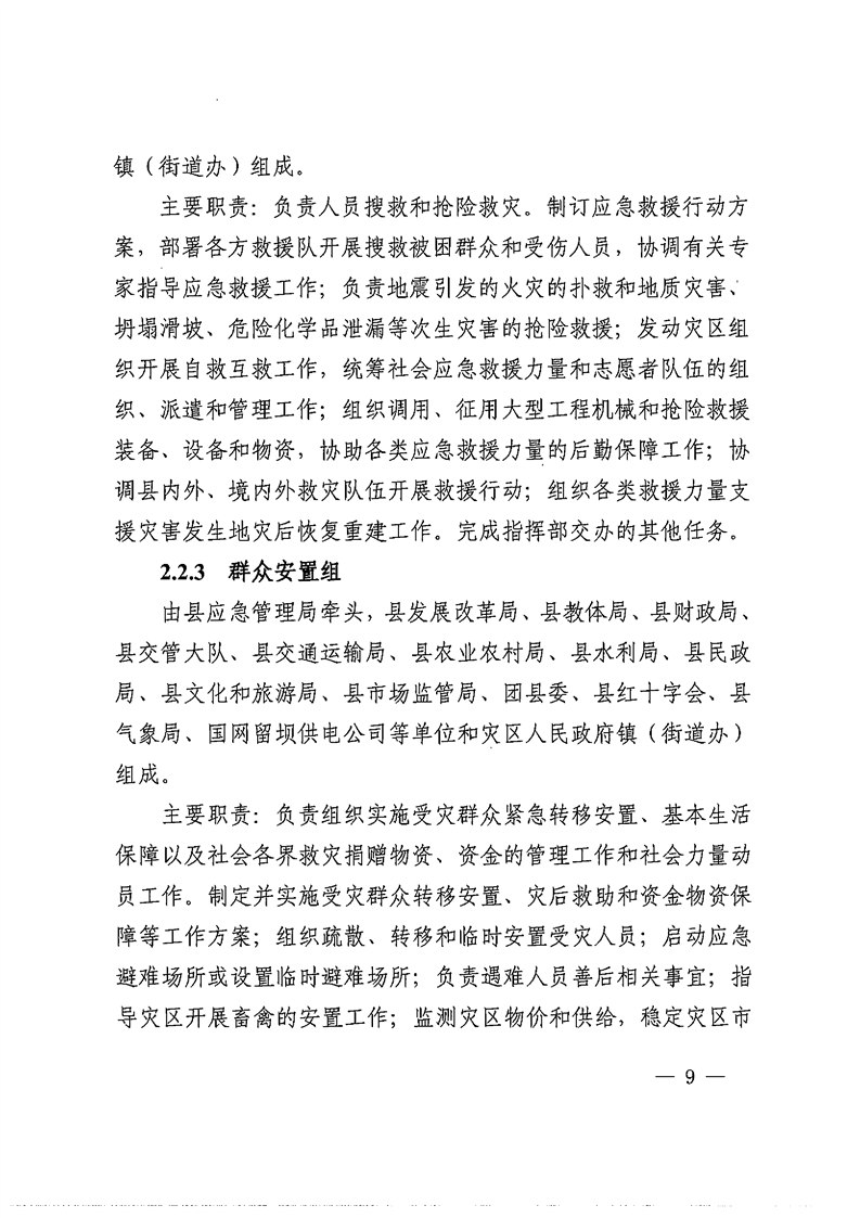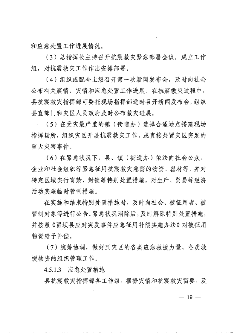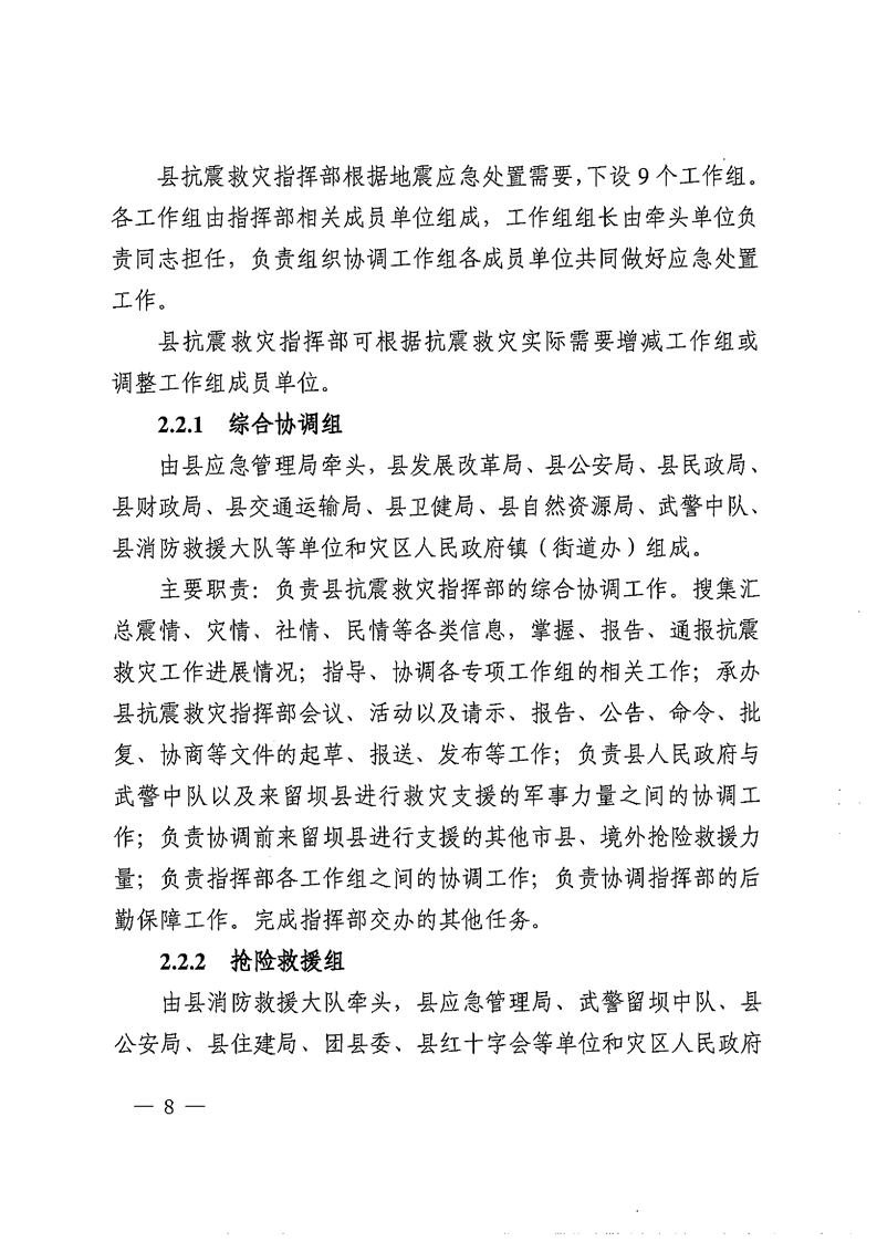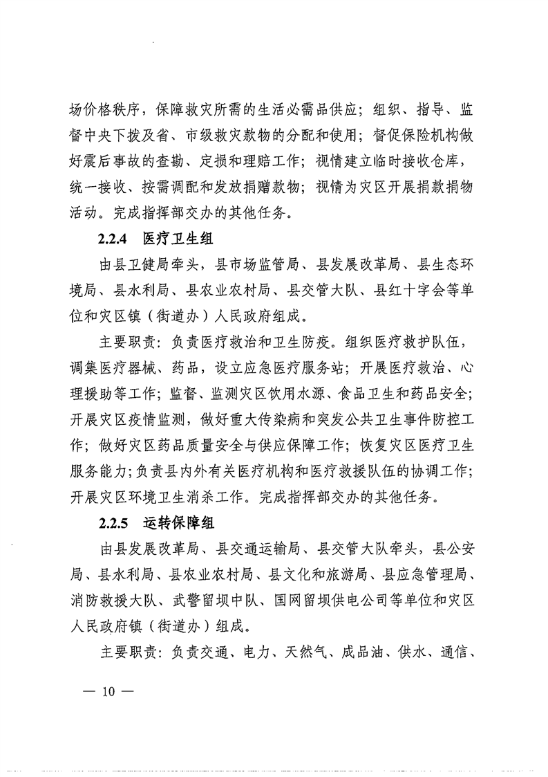 留坝县防灾减灾委员会关于印发《留坝县地震应急预案(试行 )》的通知