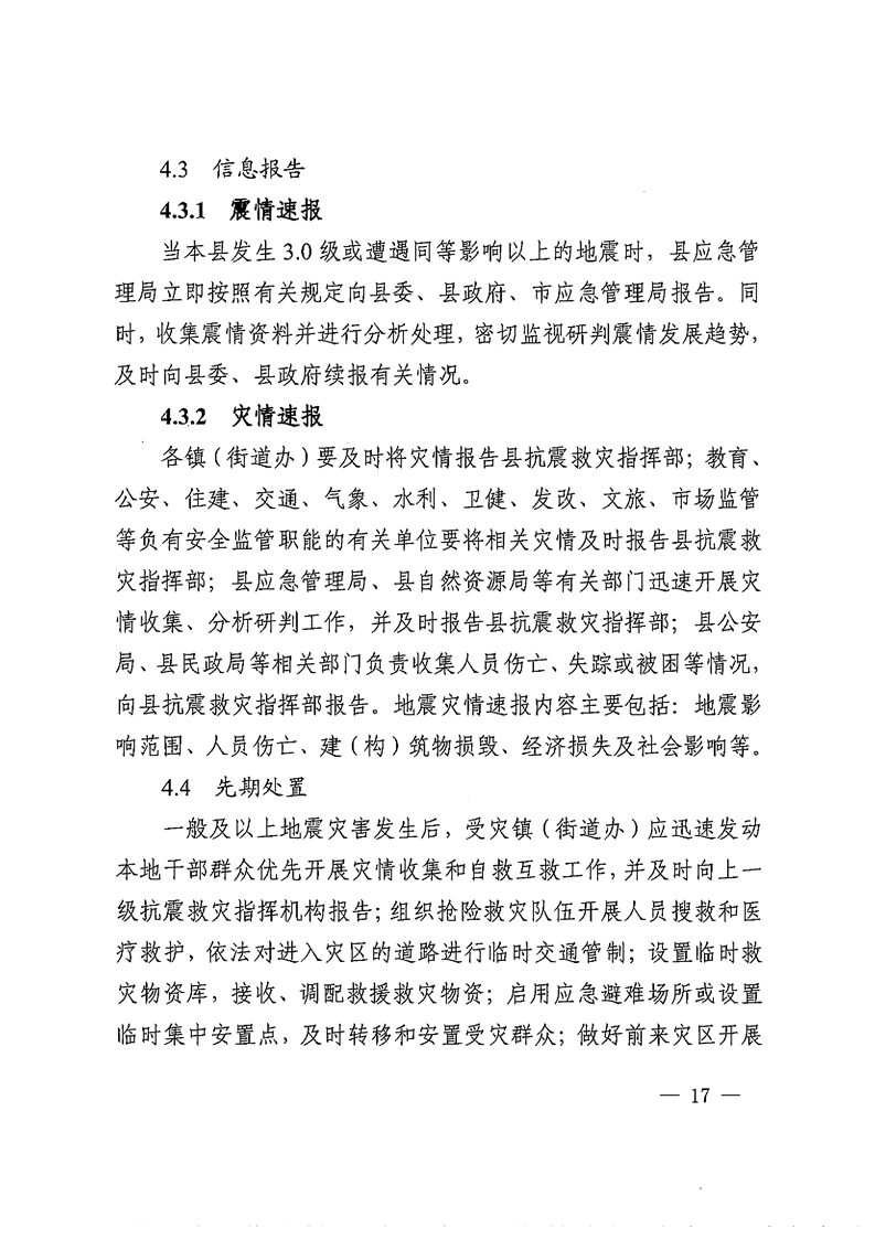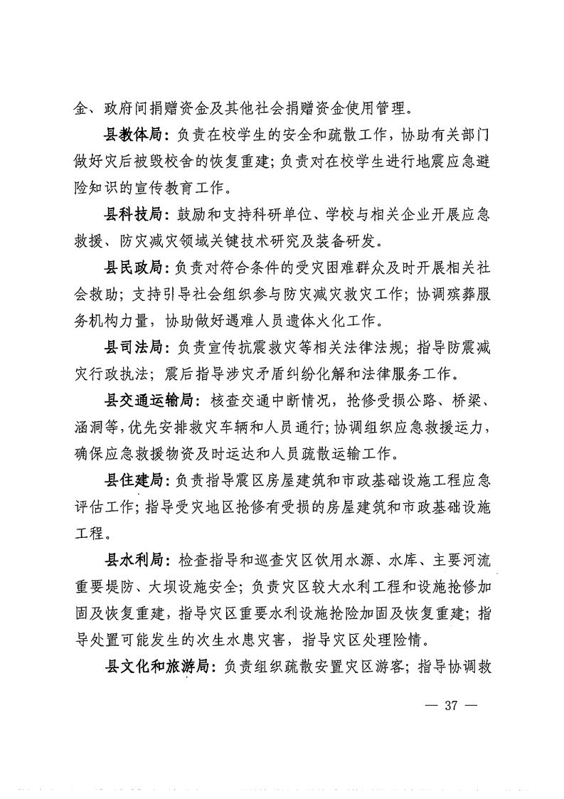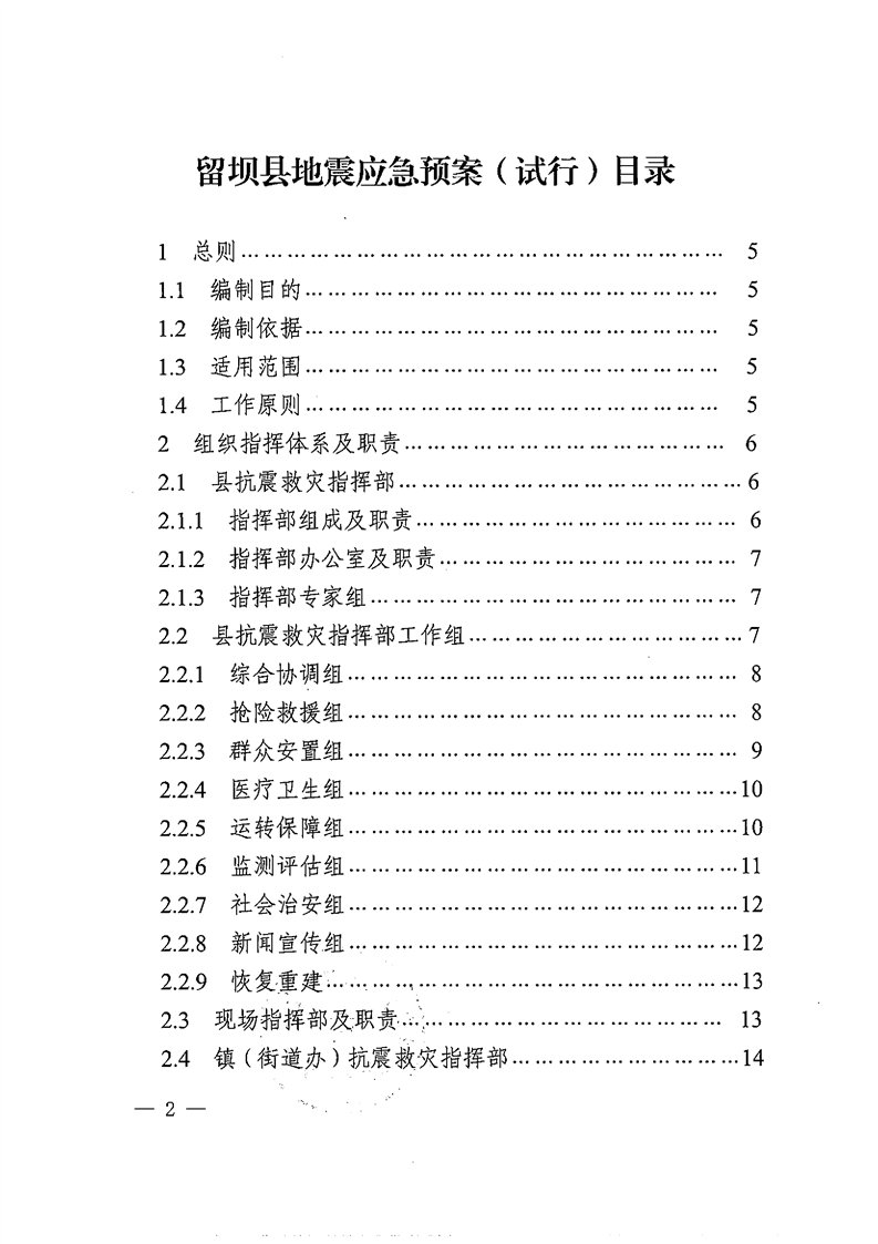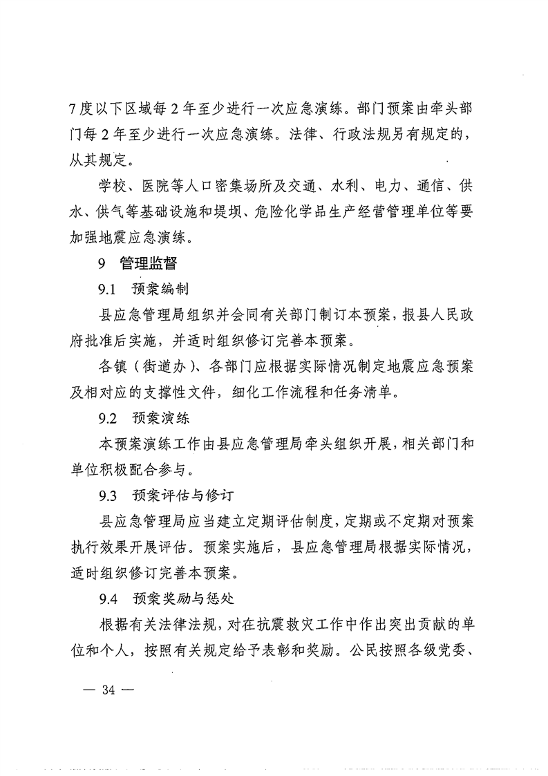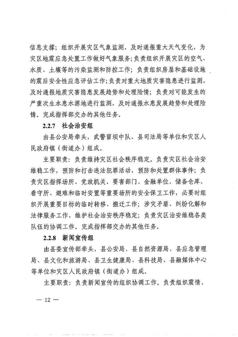 留坝县防灾减灾委员会关于印发《留坝县地震应急预案(试行 )》的通知