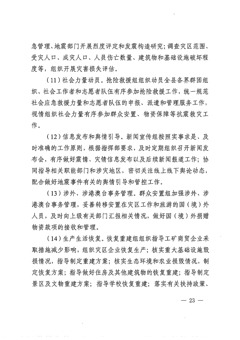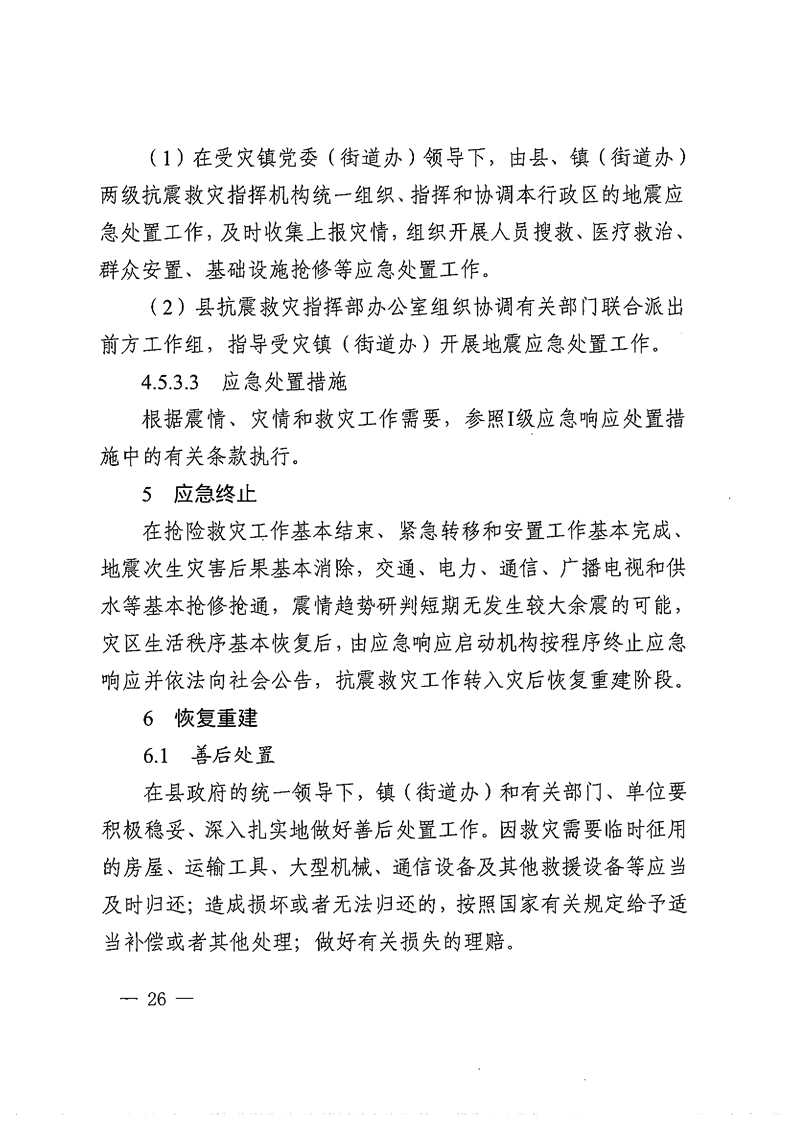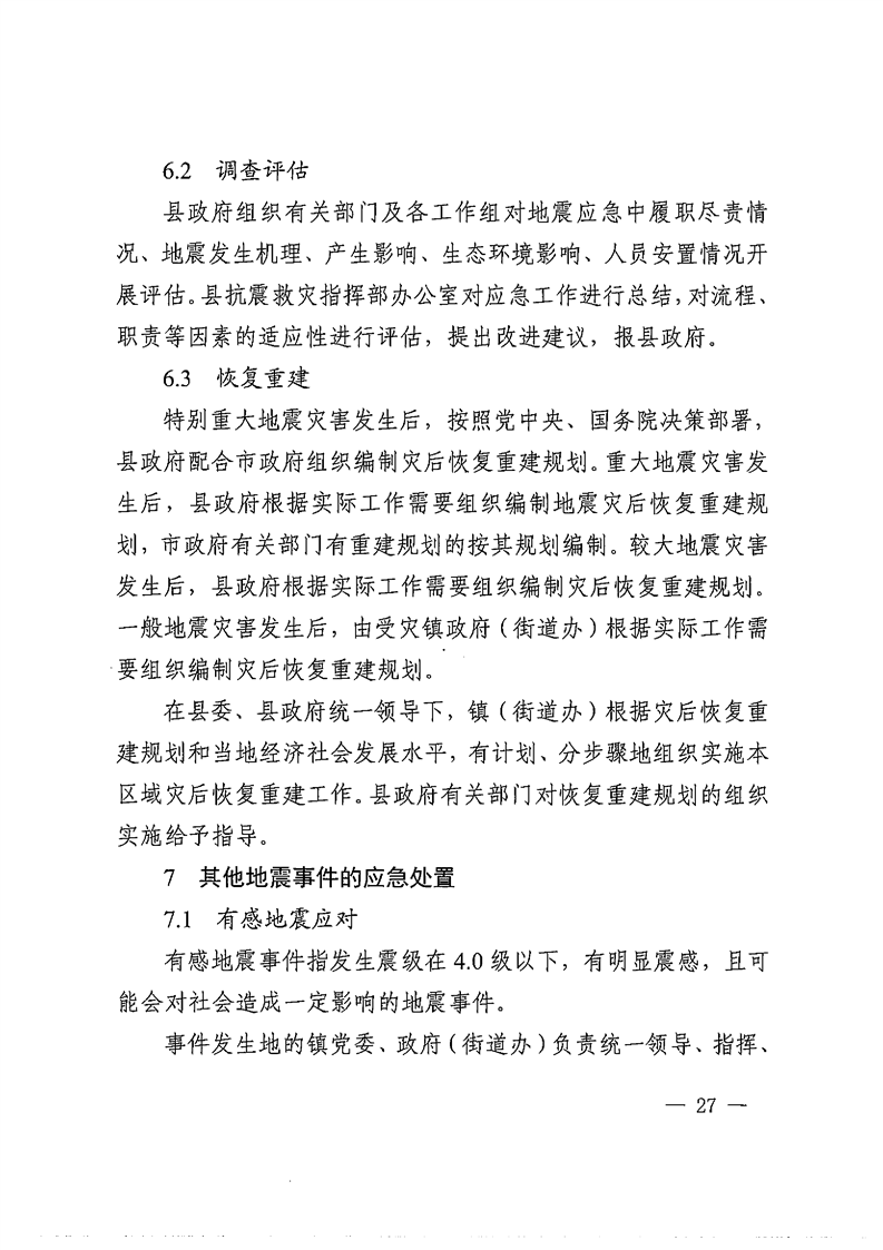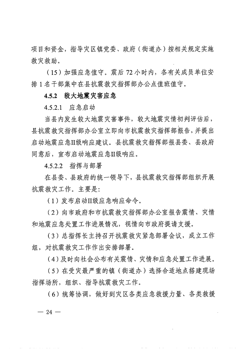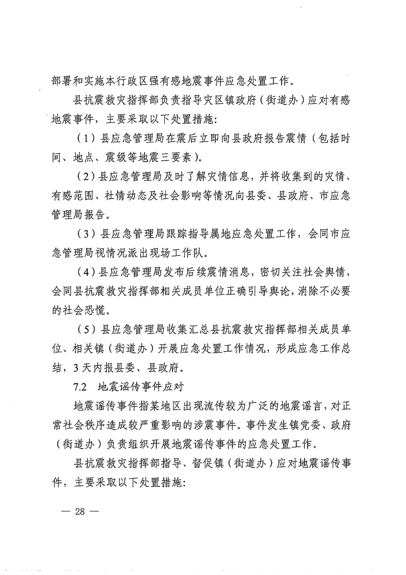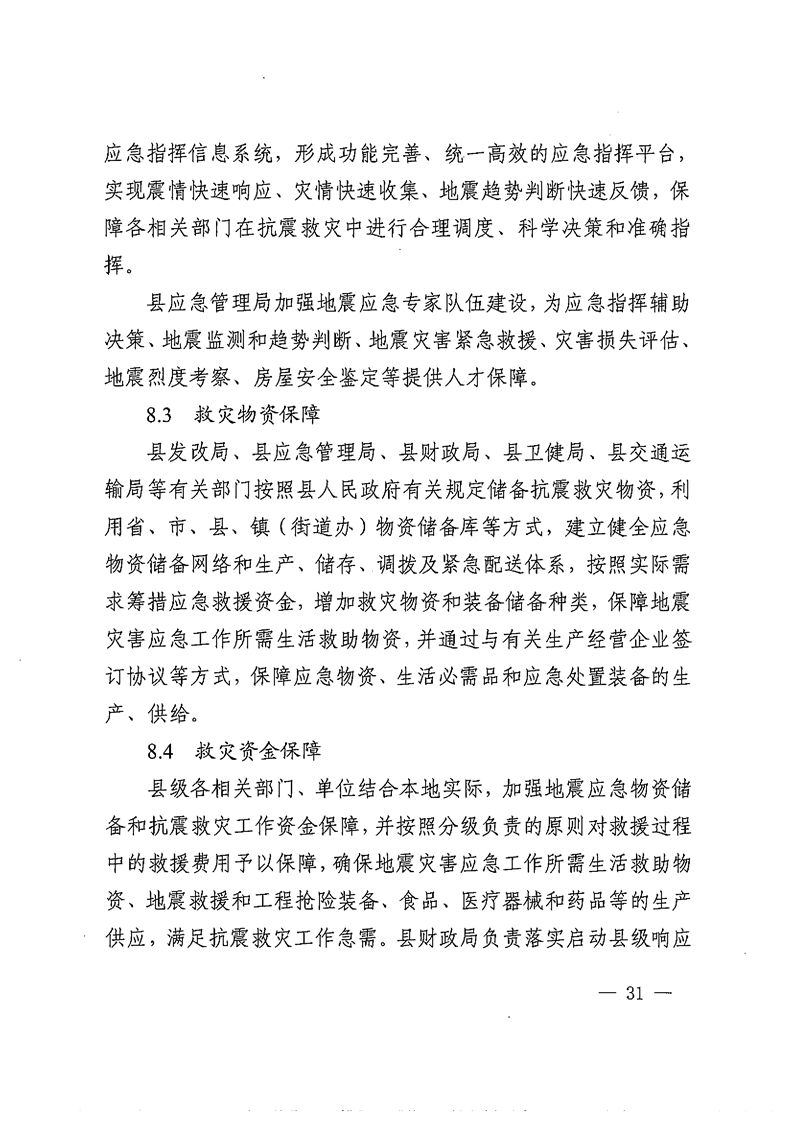 留坝县防灾减灾委员会关于印发《留坝县地震应急预案(试行 )》的通知