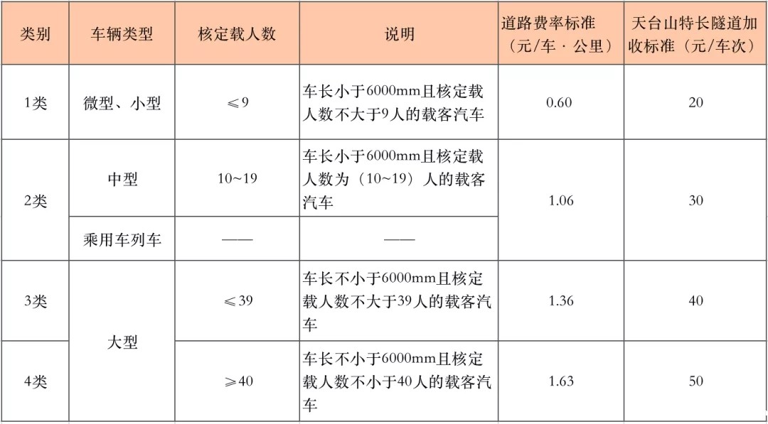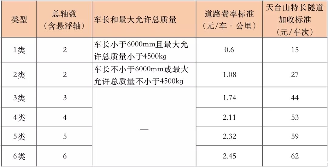 除国家规定免缴通行费的车辆外,其他车辆均须按照《收费公路车辆通行费车型分类》(JT/T489-2019)及下列收费标准缴纳车辆通行费。