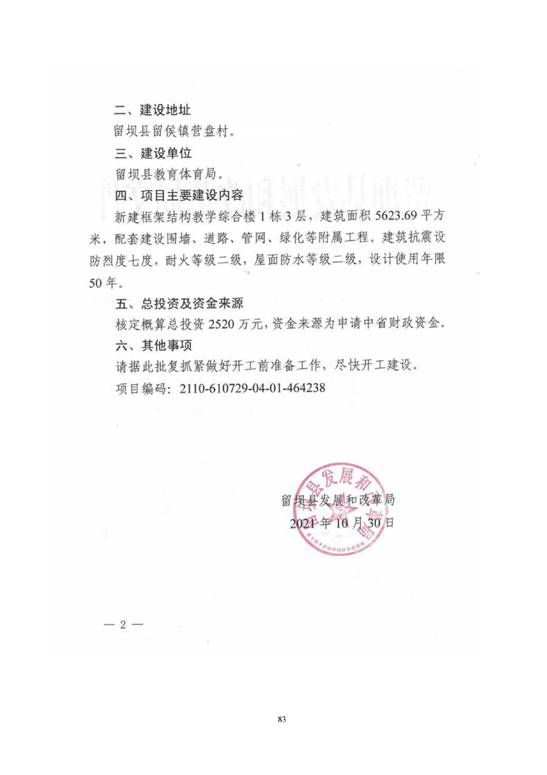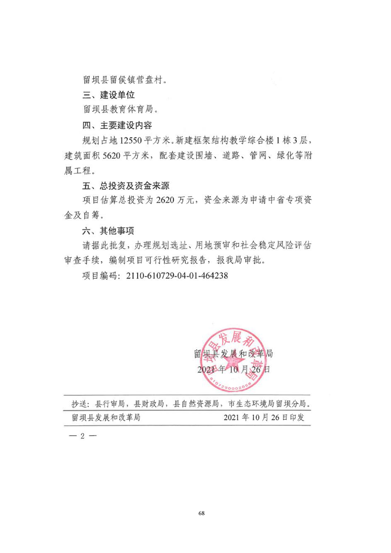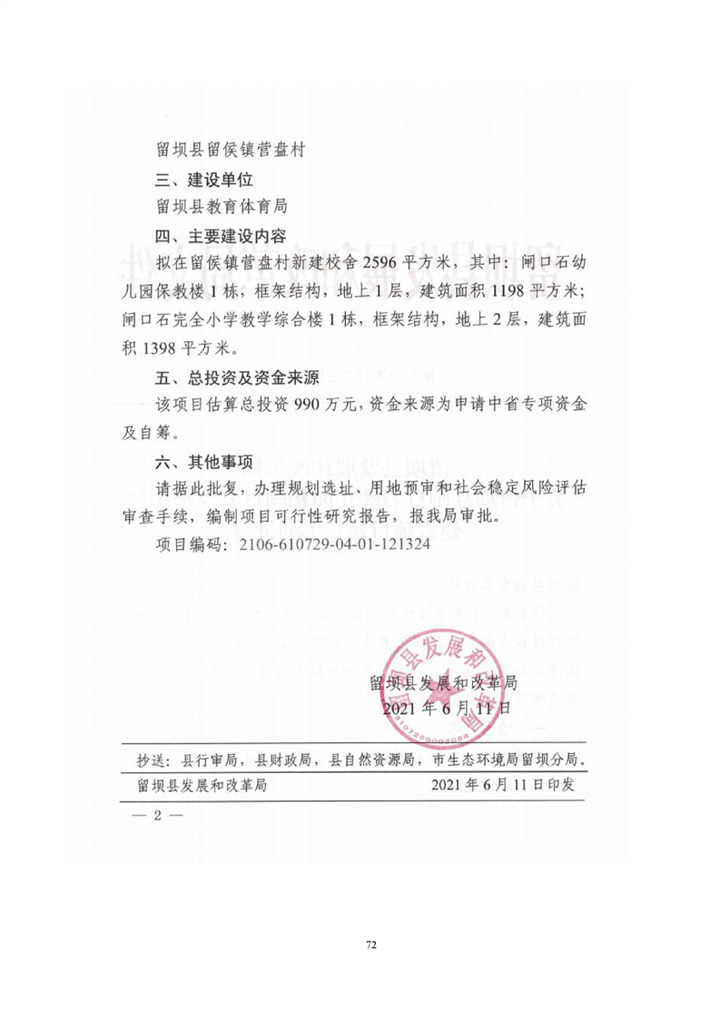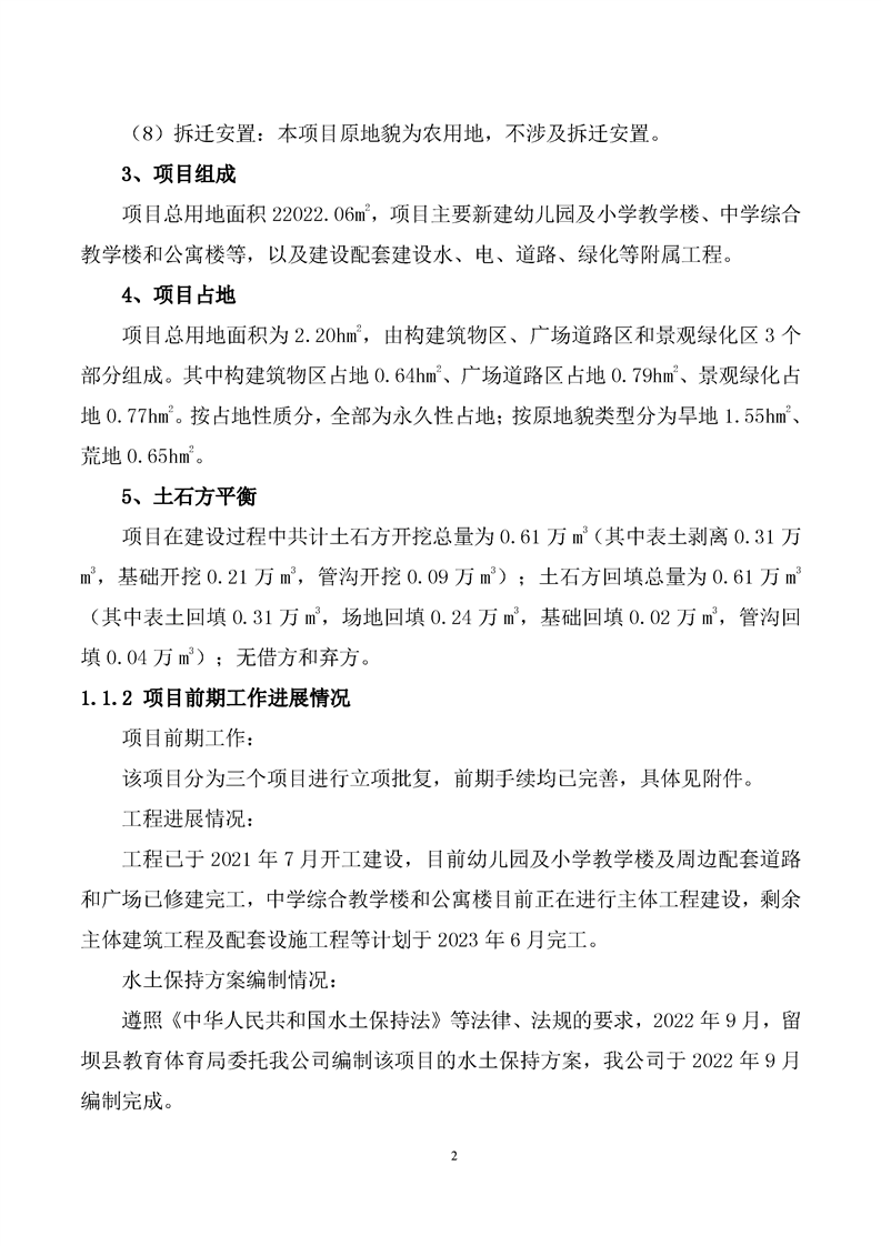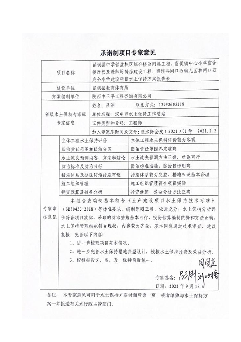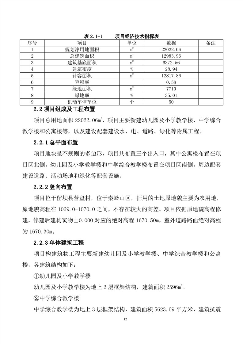 留坝县中学营盘校区教学综合楼及附属工程、留侯 镇中心小学宿舍餐厅楼及教师周转房建设项目、留 坝县闸口石幼儿园和闸口石完全小学建设项目 水土保持方案报告表