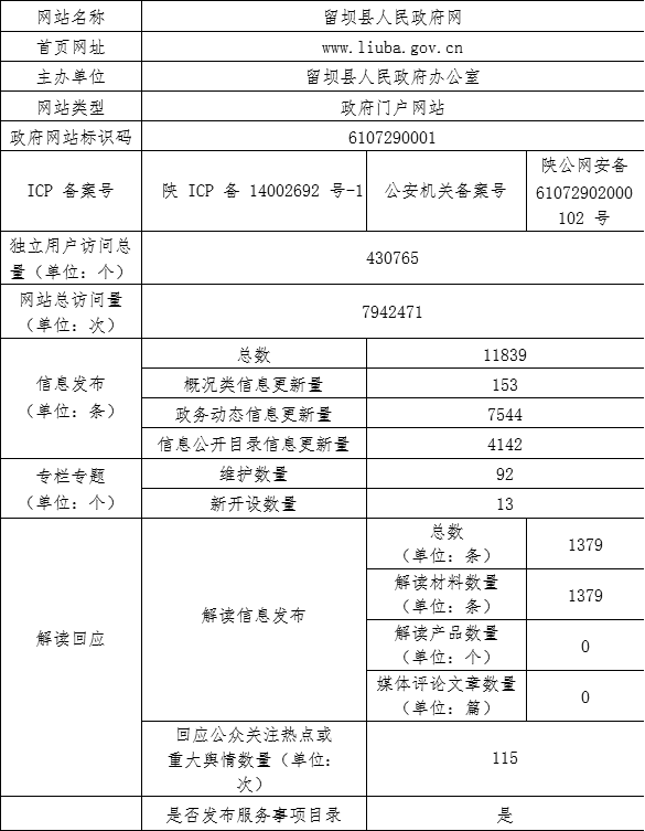 填报单位:留坝县信息化工作办公室