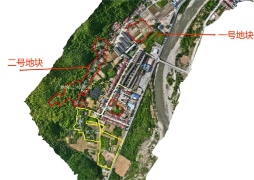 红色一号地块为酒店公区,该区域总面积16.18亩,拟设计迎宾大门、迎宾喷泉、停车场、酒店主楼;红色二号地块面积为46.95亩,为温泉康养区及休闲娱乐区、私汤区。两块土地性质均为国有建设用地,可进行快速审批建设。黄色区域地块为集体土地,共计55.17亩,该地块为区域建设发展预留用地,留待下一步开发建设。