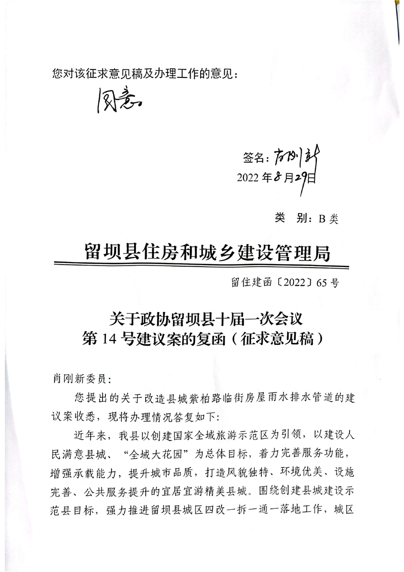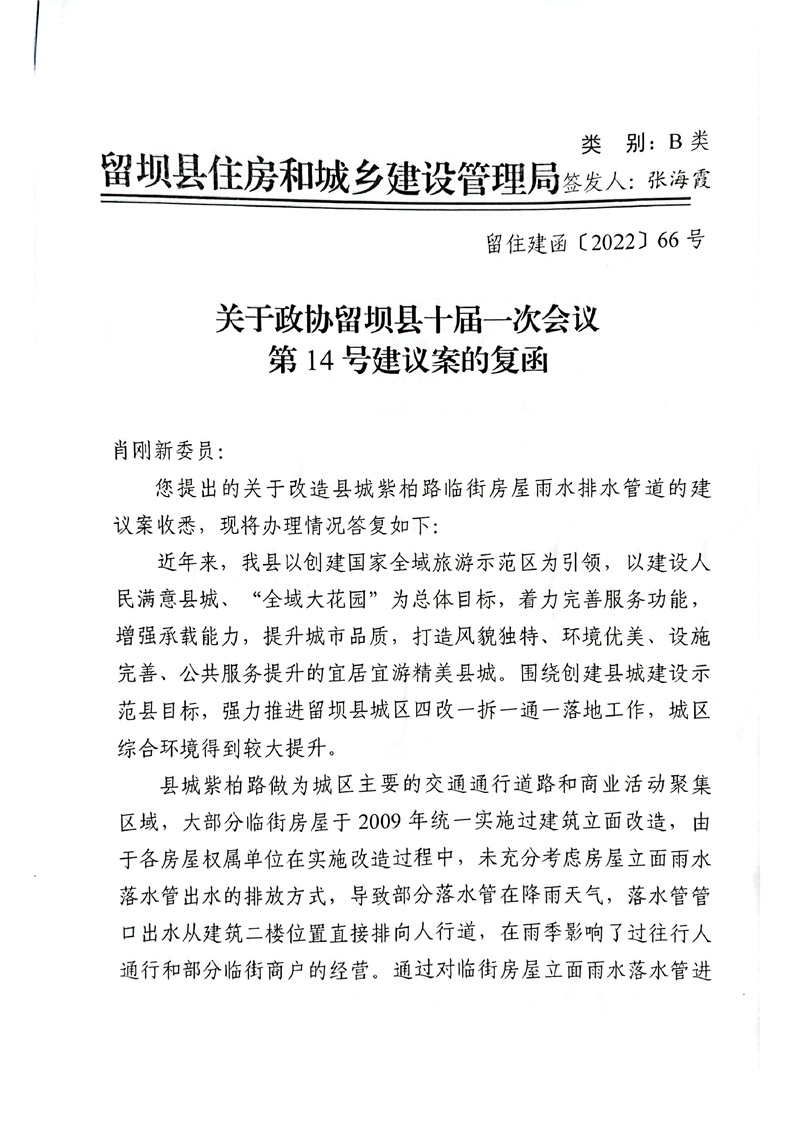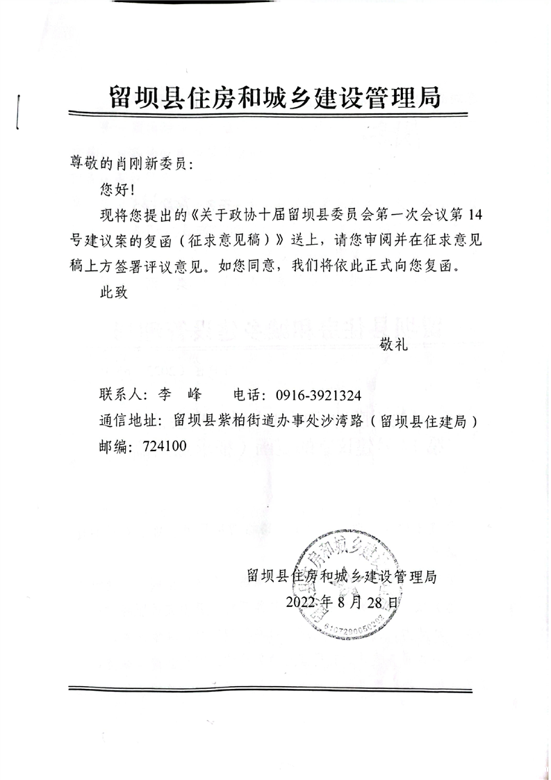 关于政协十届留坝县委员会第一次会议第14号建议案的复函